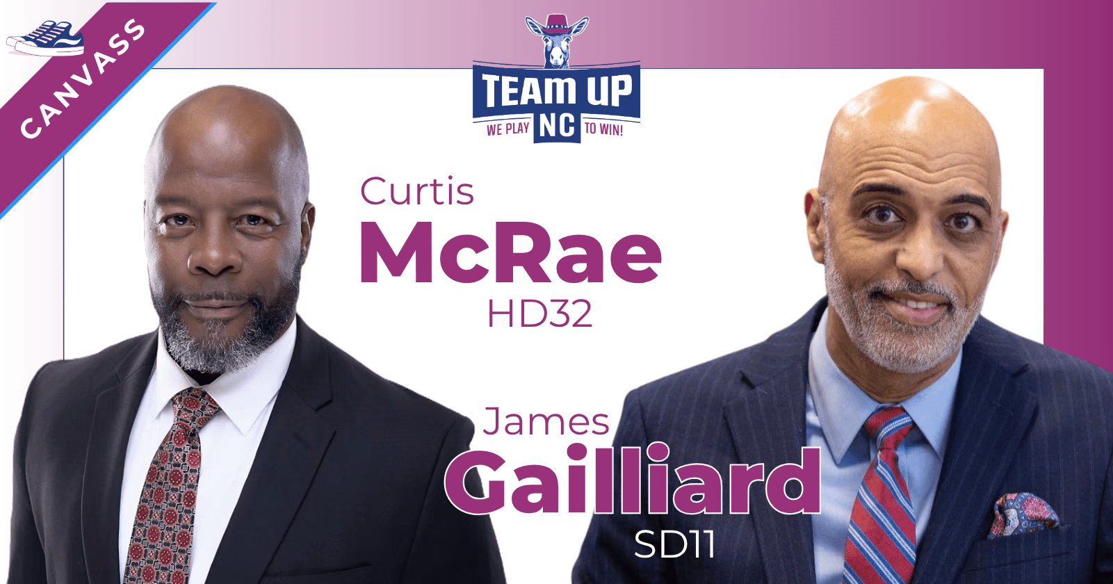Vance County, here we come! You’ll be knocking doors for James Gailliard, who’s running for the state Senate to break the Republican supermajority, and for house candidate Lorenza Wilkins where we need to grow our Dem numbers. We’ll send you the exact location on Wednesday before the canvass.
