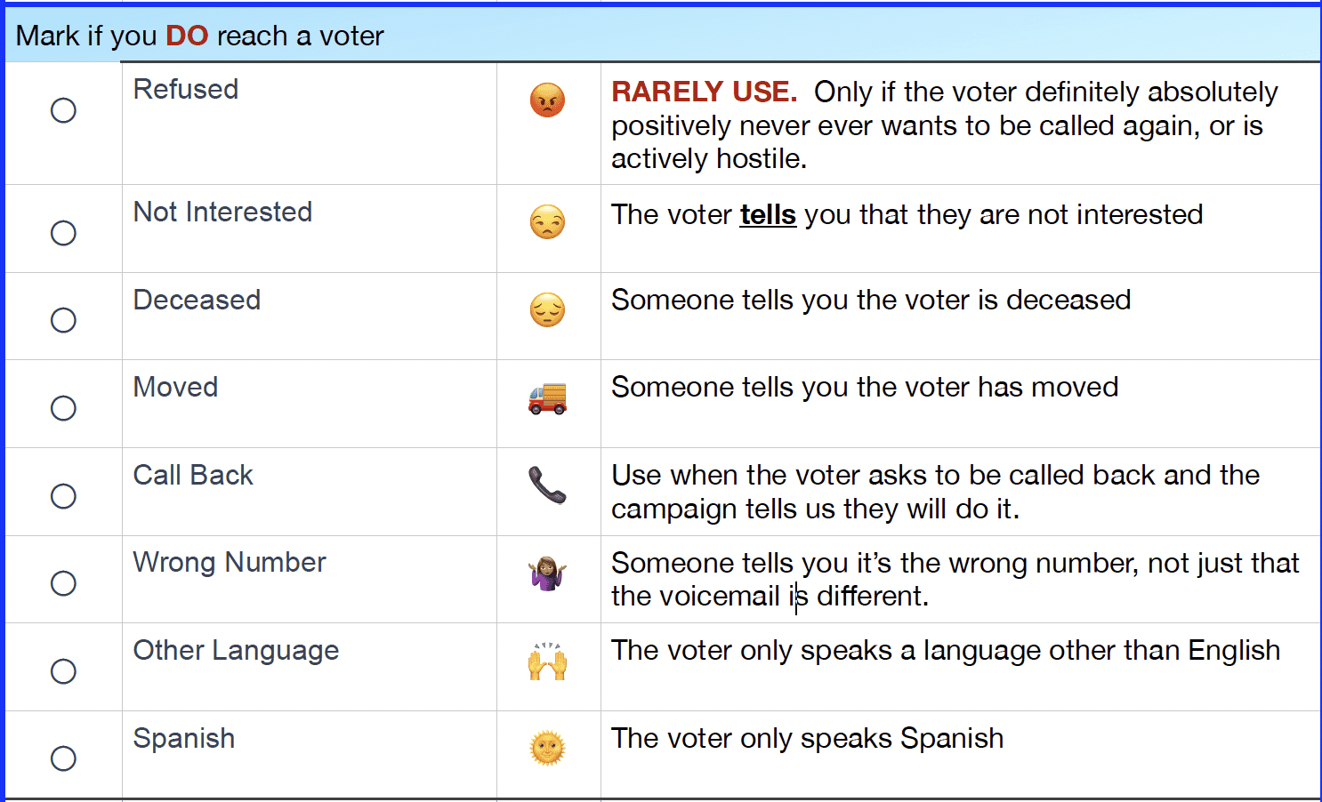 Reference for marking voter responses